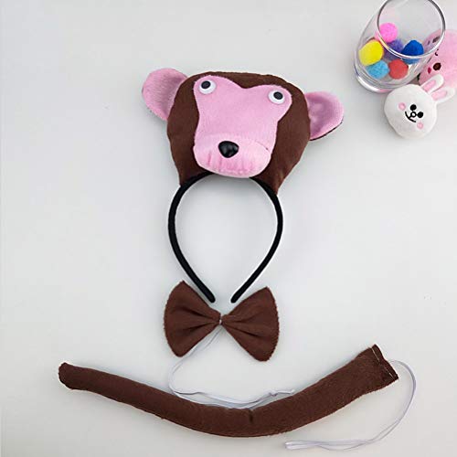 Amosfun, Costume da Scimmia, 3 Pezzi, con Cerchietto per Orecchie, Papillon e Coda, Accessori per Costume per Bambini e Adulti