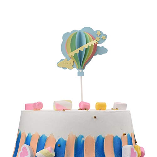 Amosfun - Decorazione per torta con mongolfiere, 3D, decorazione per torte (blu, rosa, giallo, verde)