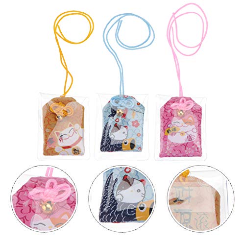 Amosfun 6Pcs Giapponese Omamori Buona Fortuna Charms Maneki Neko Soldi Fortunato Modello del Gatto Santuario Amuleto Fortunato per Amore di Istruzione Ricchezza Salute
