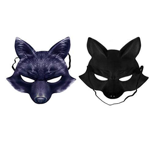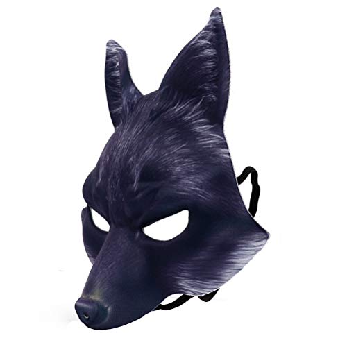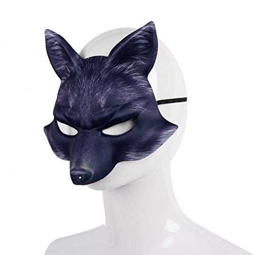 Amosfun - Maschera per Halloween con volpe, costume da cosplay a metà viso, con maschera a forma di volpe, per Halloween, carnevale