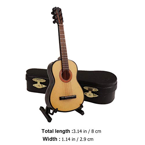 Amosfun - Modellino di Chitarra in Miniatura con Supporto e Custodia, Mini Strumento Musicale in Miniatura per casa delle Bambole