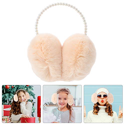 Amosfun Paraorecchie invernali natale perla scalda orecchie coperta fascia per donne ragazze sport all'aria aperta tempo freddo beige