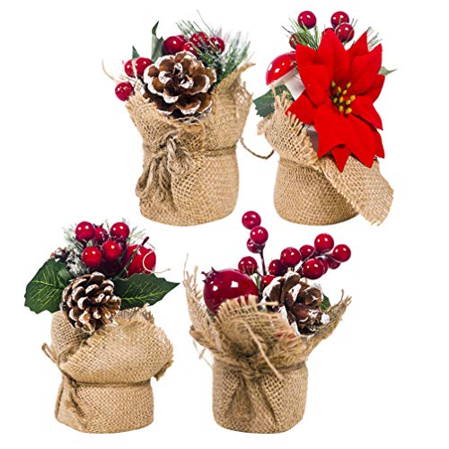 Amosfun 4 Pezzi pigne Ornamento Bacca Rossa centrotavola tavola di Natale Agrifoglio Decorazione Cono di Bacche di Natale