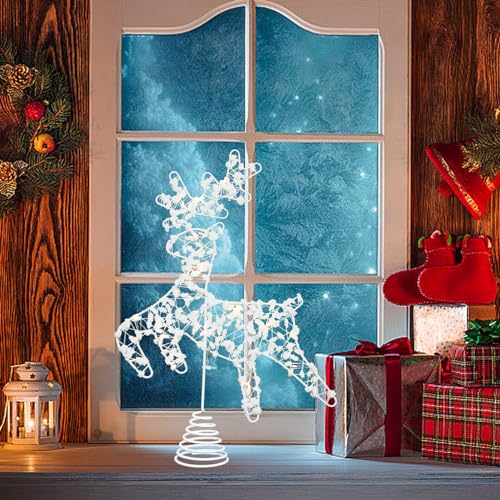 ☃️☃️☃️CIMA D'ALBERO A LED CON RENNA: adatta per decorare il tuo soggiorno, casa, ufficio, centro commerciale, supermercato, hotel, ristorante, chiesa, negozio di articoli da regalo o bar a Natale.