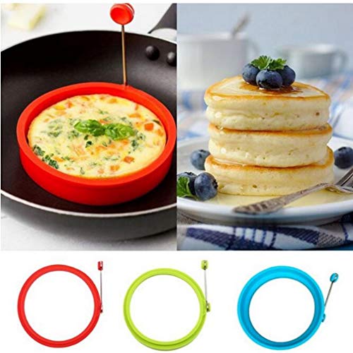 AMOYER 1pc Silicone Uovo Fritto Pancake Antiaderente Frittata Uovo Fritto Shaper Rotondo Uova Stampo per Cucinare Colazione Padella Forno Cucina Colore Casuale