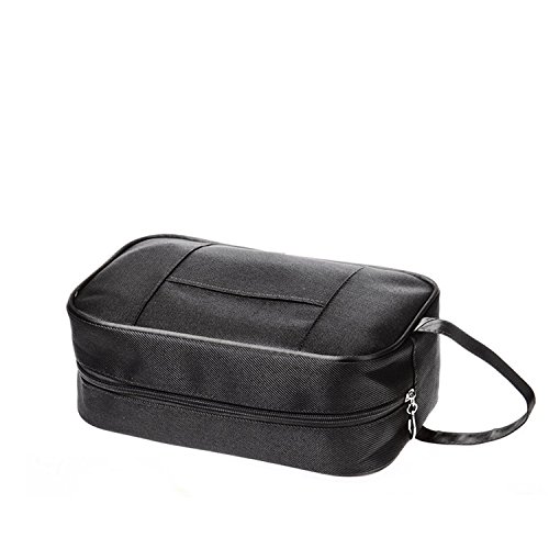 Amoyie - Beauty case da viaggio + Una custodia per spazzolino da denti in silicone, borsa da toilette, cosmetici borsa per accessori bagno, nero
