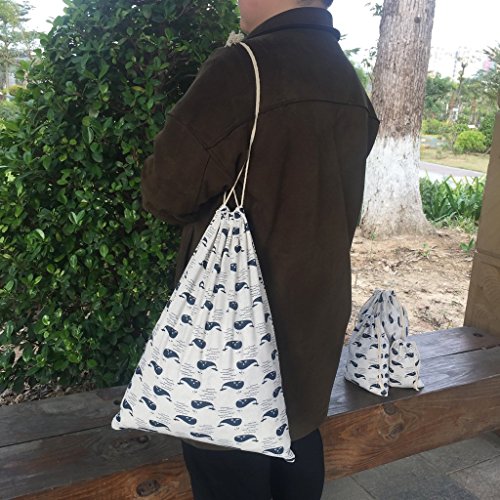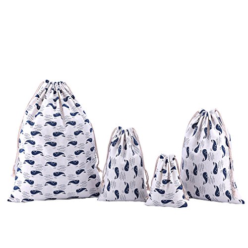 Amoyie - 4 pezzi organizer borsa cotone con coulisse per bimba abiti, pannolini, giocattoli, matite colorate, caramella, regalo - Grande (35x45cm) + medio (25x33)+ piccola (18x26) + sottile (14x18)