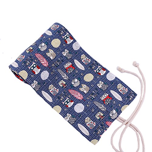Amoyie Sacchetto della matita tela rotolo astuccio per 48 matite colorate, portamatite arrorolabile tela organizer astuccio (no inclusa matite), Gufo