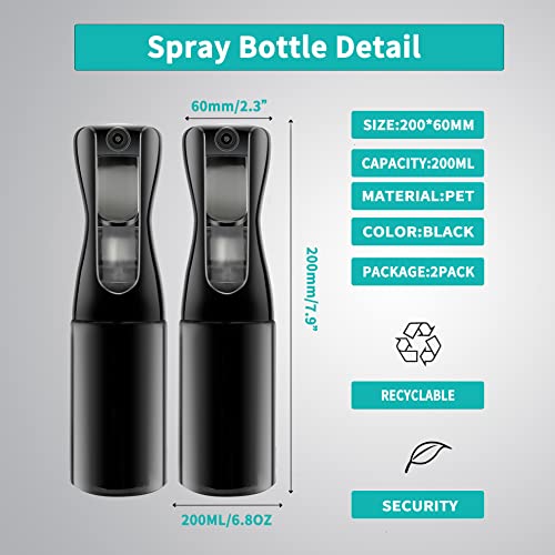 AMOYOX 2 Pezzi Flacone per lacca per capelli 200ml Nebbia continua ultra fine Idratante ricaricabile per acconciature, botanici, detergenti, nebulizzazione e cura della pelle Nero