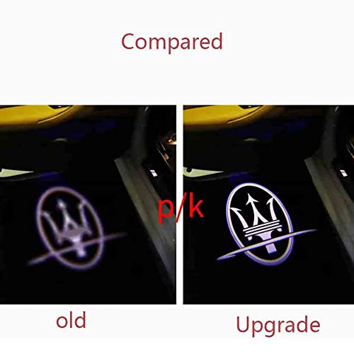AMPACO Luce di Benvenuto per portiera Auto 2 Pezzi, per Ma-serati Ghibli Luci Laterali proiettore di Luce Logo per portiera dell'auto,A