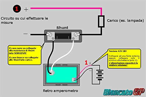 Amperometro Pannello DC 50A LED Rosso Shunt auto moto camper digitale car audio