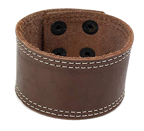 Cinturino da polso in vera pelle, largo, resistente, alla moda. Circonferenza massima del polso: 190-210 mm per uomo.