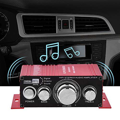 Mini HiFi Amplificatore, ASHATA Bluetooth HiFi Auto MP3 Car Stereo Amplificatore Audio Amplificatore, Mini Portatile 12V 2 Canali HiFi Stereo Bass Amplificatore Digitale 20Wx2 per Car Car Rosso