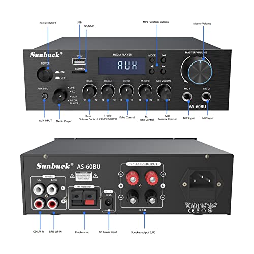 【280 W di potenza di picco】Amplificatore bluetooth può raggiungere una potenza di picco di 280 W, fornendo una potenza di uscita abbastanza potente. Questo sistema di amplificazione supporta altoparlanti passivi da 1,75" a 15", RMS 100W*2@4OHM. Perfetto per il tuo karaoke, home theater, sistema audio e cuffie monitor.