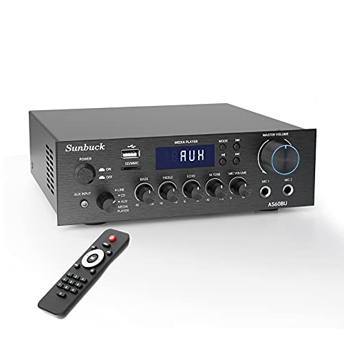 Amplificatore Audio Casa Hifi, Stereo Bluetooth Sintoamplificatore, Doppio Canale Amplificatore con Bluetooth 5.0, USB, SD, Radio FM, Telecomando