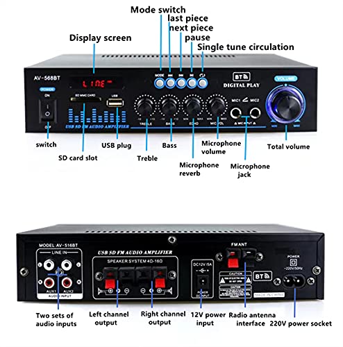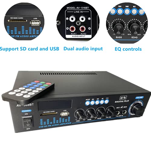 360W Amplificatore Bluetooth 5.0 mini Amplificatore Audio Stereo con Telecomando ed Mini Display LCD, 12 V / 220 V, 2.0 Channel con Ingresso USB/RCA/Scheda SD/per Casa, Auto Audio,Audio Speaker