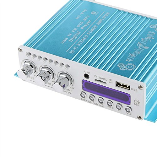 V10 Mini amplificatore per auto Bluetooth 12V DC, amplificatore di potenza audio amplificatore a 2 canali con telecomando, supporto FM / MP3 / TF / USB / DVD (senza adattatore) (Blu)