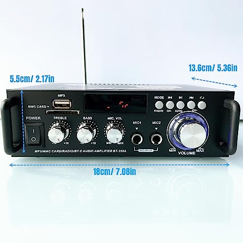 Amplificatore Bluetooth, Mini Amplificatore Stereo Audio Hifi Bluetooth, Amplificatore Cuffie, Hi-Fi Digital Amp 2.0 Channel 600W con Ingresso USB/RCA/Scheda SD/per Casa, Auto Audio (298A)