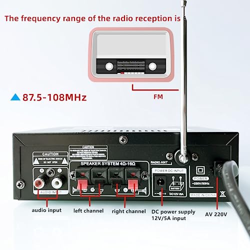 【Alta fedeltà e suono chiaro】 Potenza: 600W. È possibile regolare gli acuti, i bassi e il volume generale in base alle proprie esigenze. Facilissimo da usare. Offri una qualità del suono superiore, un suono più chiaro e raffinato. Supporta trasmissioni FM stereo e può essere collegato a un microfono che può essere utilizzato a casa o in un sistema karaoke. migliorare la qualità della vita.