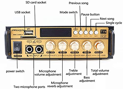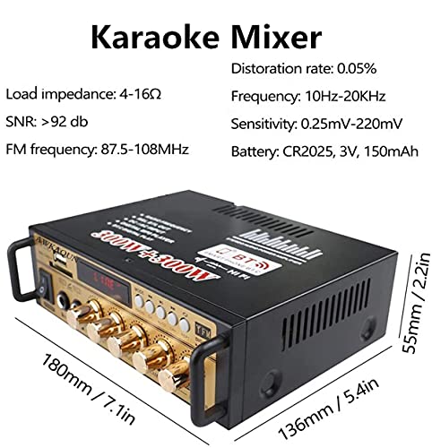 Amplificatore Bluetooth, Mini Amplificatore Stereo Audio Hifi Bluetooth,Karaoke Mixer,Hi-Fi Digital Amp 2.0 Channel 600W con Ingresso USB/RCA/Scheda SD/per Casa, Auto Audio,Audio Speaker