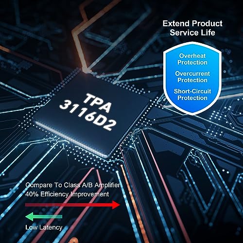 Amplificatore potente e suono di alta qualità: Elevate la vostra esperienza audio domestica con l'amplificatore stereo Bluetooth B50 SE. La sua potente uscita di 50W x 2 può facilmente pilotare i diffusori da scaffale, da tavolo, da incasso o altri diffusori passivi. B50 SE offre un suono ricco, chiaro e bilanciato e adatta un chip amplificatore avanzato TPA3116D2 per garantire una riproduzione musicale precisa con una distorsione minima.