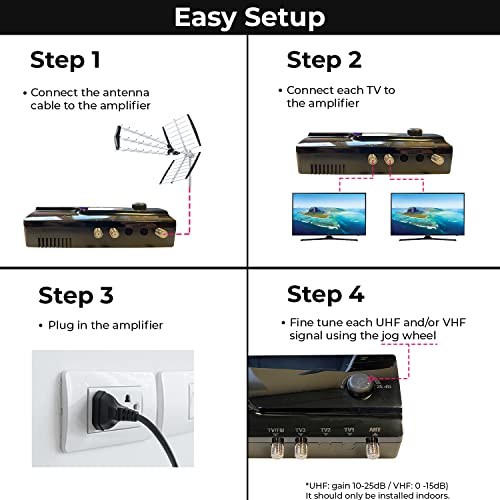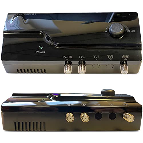 LEYF Amplificatore 2 uscite TV/Guadagno regolabile 25dB/Amplificatore Antenna TV/Ampli per TNT HD Segnale UHF 10-25dB/VHF 0-15dB