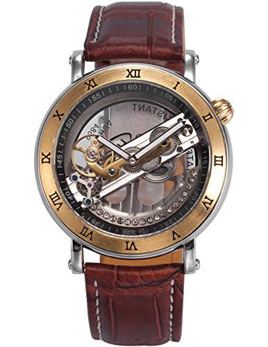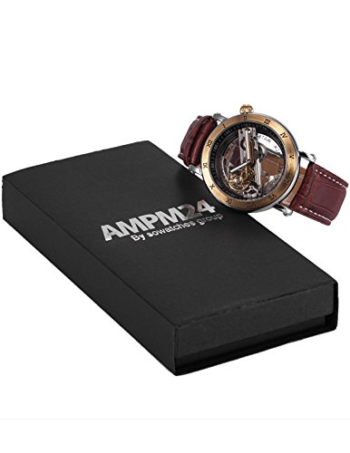 AMPM24 PMW416-Orologio da polso uomo,Pelle,Steampunk Trasparente Scheletro Meccanico Automatico Analogico,colore:Marrone