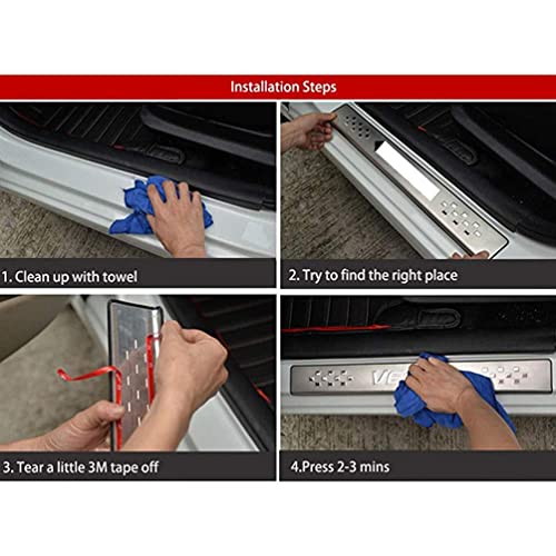★ Facile da installare: rimuovere lo sporco sul davanzale della portiera dell'auto e incollarlo direttamente, c'è del nastro 3M sul retro della protezione del davanzale della porta, basta strappare l'adesivo sul retro della piastra battitacco della portiera per rivelare il nastro 3M e attaccalo alla soglia dell'auto.