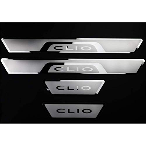 AMPTRV 4 Pezzi battitacco Auto per la Nuova Clio 2019-2020, Inossidabile Antiscivolo AntiGraffio Soglia della Porta calciere Protezioni del Pedale dello Car Styling Accessorio