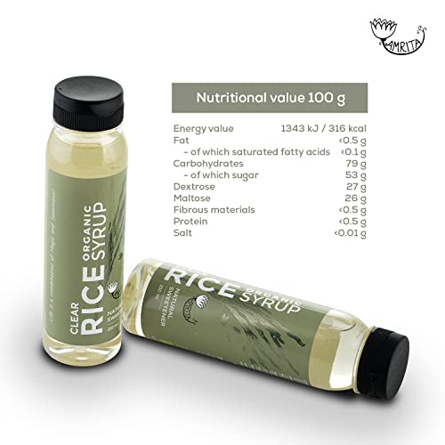 AMRITA Sciroppo di Riso Bio Chiarificato come Dolcificante Naturale - Sciroppo Malto Riso per Dolci, Torte, Pancake, Bevande - Sostituto dello Sciroppo di Mais - Dolcificante Liquido Vegano - 250 ml