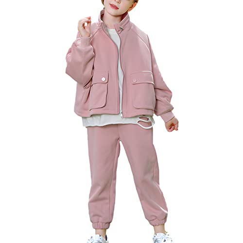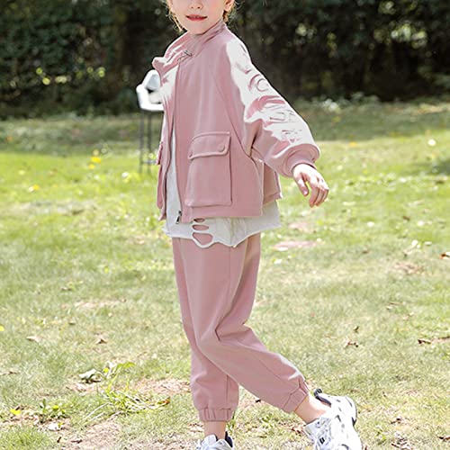 Amropi Completo da Bambina Ragazze Tuta Giacca e Jogging Pantaloni Set Completo Rosa,7-8 Anni
