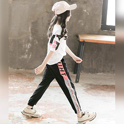 Amropi 2 PCS Set Completo Ragazze Maglietta con Maniche Corte + Pantaloni Jogging Estate Tuta Bianco Nero, 3-4 Anni