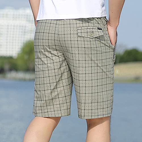 Amropi Uomo Pantaloncini Cargo Cotone Estivi Bermuda a Quadri Pantaloni Corti Cachi,XL