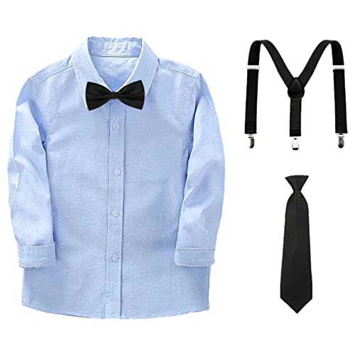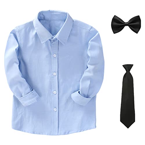 Amropi Ragazzi Completini e Coordinati Bambino a Maniche Lunga Camicie e Pantaloni e Cravatta Blu Nero, 6-7 Anni