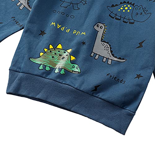Amropi Ragazzi Tuta Dinosauro Stampato Felpa e Jogging Pantaloni 2 Pezzi Completo Bambino Set Blu Nero, 1-2 Anni