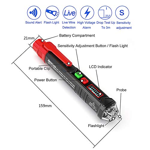 Lista del pacchetto: 1 * Voltage Tester (batterie incluse). Questa gamma di tester per penne di tensione CA di sensibilità di 12 V ~ 1000 V e 48 V ~ 1000 V consente di testare tutti gli elettrodomestici della tua famiglia.