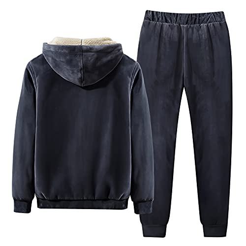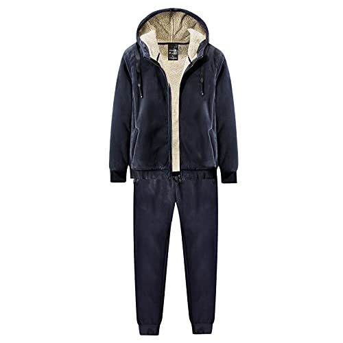 Amropi Tuta da Uomo Vello Foderato Cappotto con Cappuccio e Pantaloni Inverno Caldo Jogging Tute Marina,L