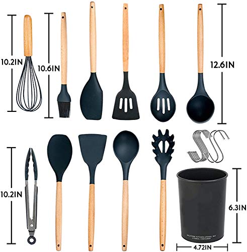 Amrta Utensili da Cucina Silicone Resistente al Calore Premium casa Strumenti di Cottura Set Frusta Spatola (aggiornamento Nero)
