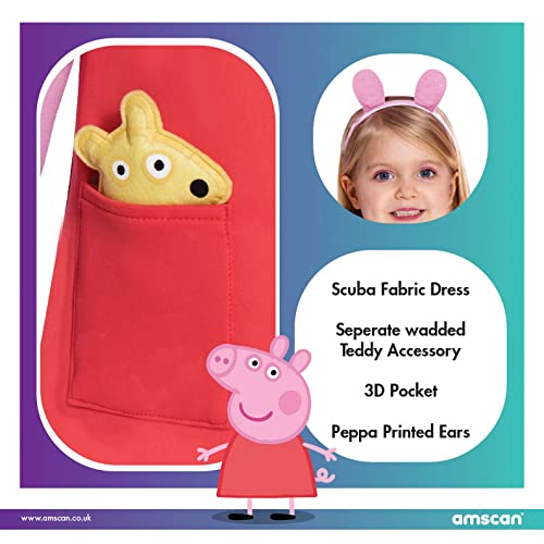 Amscan 9905929 - Costume ufficiale Peppa Pig con licenza ufficiale per bambina, rosso (2-3 anni)