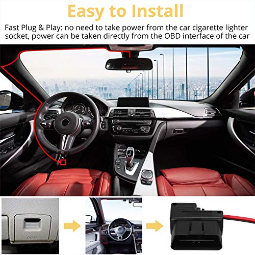 【Plug & Play】Non è Necessario Prendere l'Alimentazione dalla Presa dell'Accendisigari dell'Auto, l'Alimentazione Può Essere Prelevata Direttamente dall'Interfaccia OBD dell'Auto. Semplicemente Piggy Back dalla Presa della Scatola dei Fusibili dell'Auto per il Kit di Fusibili Cablati per Auto Dash Cam.