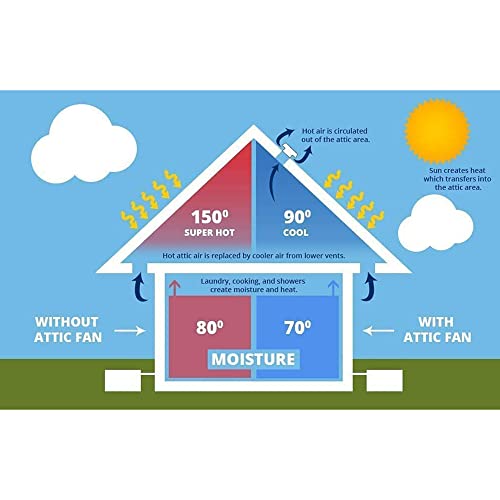 (COMPATTO) Questa ventola è 30,5 x 30,5 x 7,6 cm. Progettato per adattarsi a prese d'aria a timpano o essere installato ovunque nella tua soffitta e pesa solo 1,4 kg.