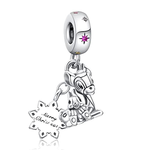 Amuefer Buon Natale Charm per Bracciali Pandora Argento 925 per Bracciali da Donna Collane, Compleanno Festa della Mamma Gioielli Donne Ragazze Regali
