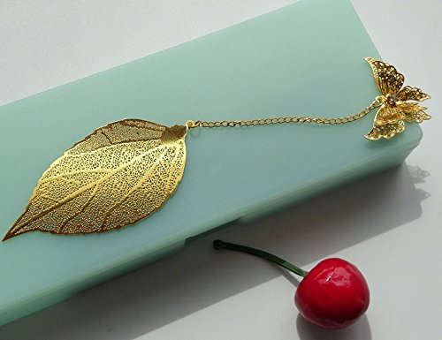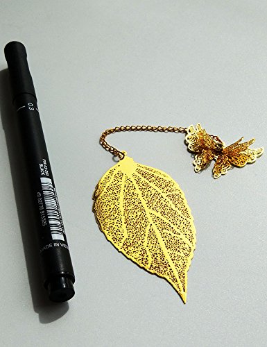 Amupper, segnalibro artistico in metallo dorato a forma di foglia con farfalla, segnalibro in stile kawaii, accessorio per l'ufficio da regalare, articolo di cancelleria