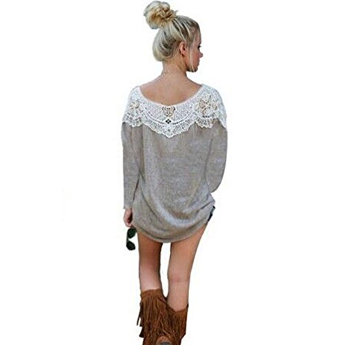 AMUSTER Sezione Donna Grigio Lungo Manica Camicia Pizzo Camicetta Sciolto Cotone Più Fashion Top T-Shirt (S)