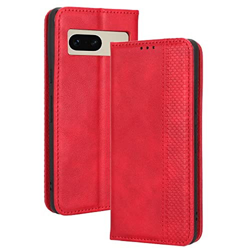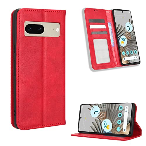 AMWEI Leather Folio Cover per Google Pixel 7, Custodia in Pelle PU Magnetica Libro Flip Portafoglio con [Funzione Stand]. Rosso