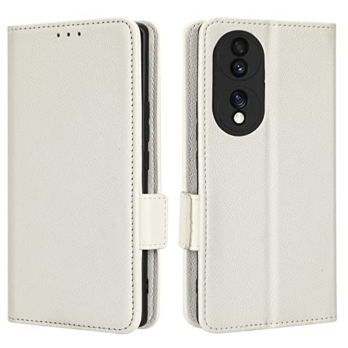 AMWEI Leather Folio Cover per Huawei Honor 70 5G Case, Custodia in Pelle PU Magnetica Libro Flip Portafoglio Bumper con [Funzione Stand]. Bianco