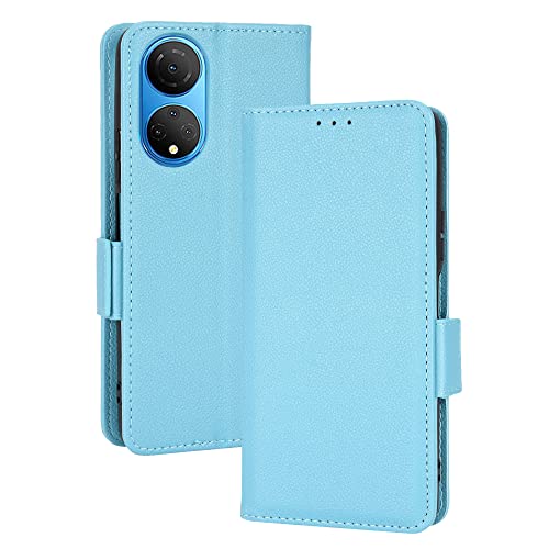 AMWEI Leather Folio Cover per Huawei Honor X7 Case, Custodia in Pelle PU Magnetica Libro Flip Portafoglio Bumper con [Funzione Stand]. Azzurro