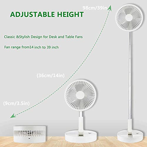 Ventilatore multifunzionale/ventilatore da scrivania: altezza regolabile da 36 a 98 cm, può essere utilizzato come ventilatore da pavimento a circolazione d'aria, può anche essere trasformato in un ventilatore da tavolo o ventilatore portatile/pieghevole. Questo ventilatore pieghevole è estremamente pratico ed è ideale sia per uso domestico che in ufficio.