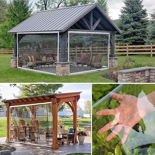AMXFS Telone trasparente con occhielli, 8 x 9,5 m, trasparente, con 2 cerniere, in PVC, 0,35 mm, trasparente, impermeabile, multiuso, 400 g/m²