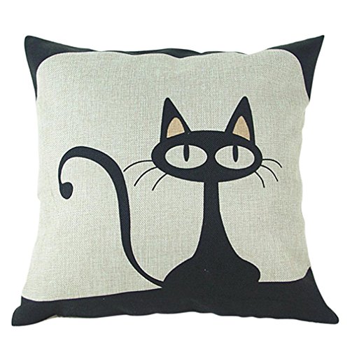 Amybria Decorativa per cuscino per divano letto in lino federa di cotone, Cotone di lino, schwarze Katze, 45cm*45cm/18"*18"